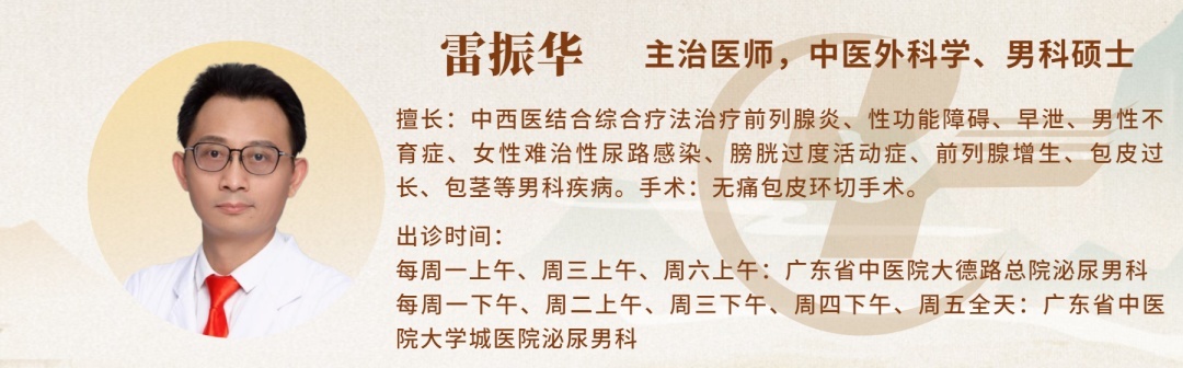 更多专业问题,请关注“广东省中医院男科”微信公众号,或通过“广东省中医院服务号”挂号男科专家咨询问诊。